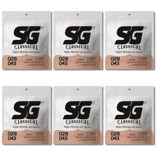 Kit 6 Encordoamento Violão Nylon SG Tensão Média 0.028 -0.043