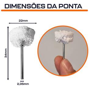Jogo com 6 Escovas de Polimento Haste 2,35mm Cotton para Polir com Micro Retíficas e Mini Lixadeiras Dremax - Marca: Dremax - Kit exclusivo com 6 pontas de algodão para polir - Diâmetro 22mm - Diâmetro da haste: 2,35mm - Uso em micro retíficas e mini lixadeiras de qualquer marca com pinça de 2,35mm - Roda 100% algodão natural - Indicada para polimento de joias, metais ferrosos ou não ferrosos, aço, aço inoxidável, alumínio, bronze, cobre, latão e plástico em geral - Proporciona maior rendimento durante o trabalho - Recomenda-se a utilização com pasta para polimento - Garantia: 90 dias contra defeitos de fabricação A DREMAX é a primeira e única marca brasileira dedicada exclusivamente às micro retíficas, acessórios e acoplamentos para esta indispensável ferramenta. Seja para trabalhos de precisão, artesanato, modelagem ou reparos, a DREMAX tem o produto certo para você. Marca: Dremax
