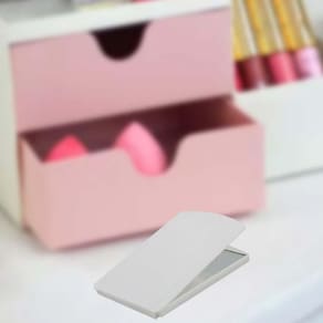 Espelho de bolsa, portátil, formato retangular com tampa protetora articulada, feito em Plástico Premium PSAI resistente a impactos e riscos. Imagens meramente ilustrativas. Marca: Não Informado