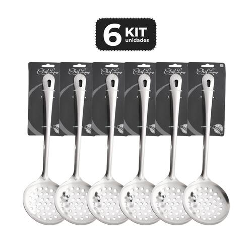Ideal para utensílios e outros alimentos cozidos ou fritos de líquidos. Possui abertura no cabo para pendurar e tê-la sempre à mão