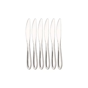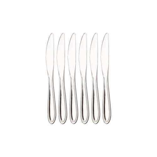 - 6 Facas de Sobremesa (Ponta arredondada) 18,6 cm; tamanho lâmina 9,5 cm e espessura 3 mm