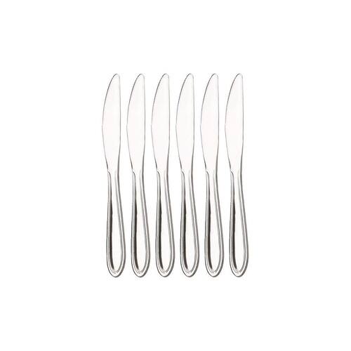 - 6 Facas de Sobremesa Ponta arredondada 18,6 cm; tamanho lâmina 9,5 cm e espessura 3 mm
