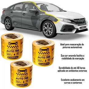 A fita crepe amarela da Adelbras é feita especialmente para mascaramento automotivo. Uso em estufa até 100°C e também para secagem ao ar livre. Possui barreira UV para resistência aos raios ultravioleta e exposição ao sol por até 48 horas. O modelo de fita amarela automotiva anti UV possui ótima adesão, resistente a solventes e umidade, ótima fixação em superfícies metálicas, plásticas e borracha. Não deixa resíduo após a remoção. Disponível somente na cor Amarela.