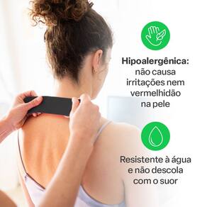 - Resistencia Extrema: A prova dagua e suor. Pode treinar pesado ou tomar banho; ela nao descola com facilidade. - Conforto Hipoalergenico: Livre de latex e feita para minimizar irritacoes, sendo gentil com a pele mesmo em usos prolongados. - Material Premium: Composta por 93 Algodao e 7 Elastano, oferecendo a elasticidade perfeita que imita a flexibilidade da pele humana.