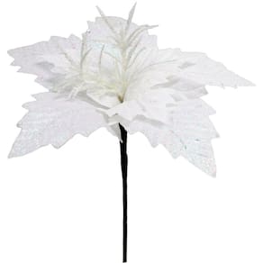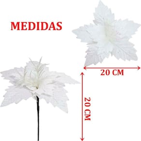 Kit 6 Flores Artificial Gliter Enfeite Branco Natalino 25cm -