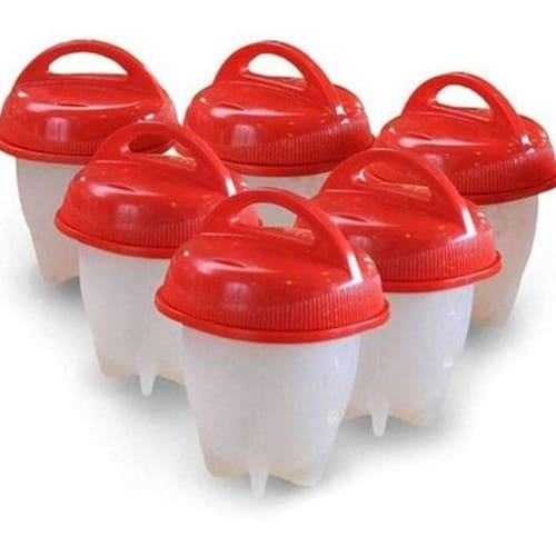 - conjunto com 6 formas com de silicone com tampa para fazer ovos cozidos;