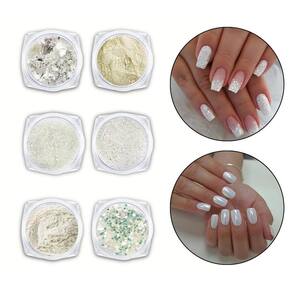 Contém: 06 - Glitter Branco para Decoração e Encapsulamento de Unhas