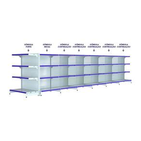 Nosso kit com 6 gôndolas de centro + ponta na cor branca é ideal para armazenamento e exposição de produtos em supermercados, mercearias, farmácias, lojas de utilidades, materiais de construção, agropecuárias, e muito mais, variando de acordo com a capacidade de peso de cada modelo.com 1,37m de altura, esta gôndola proporciona uma exibição eficiente dos produtos, maximizando o espaço vertical da sua loja e permitindo uma organização prática e acessível.as gôndolas possuem uma capacidade de 40kg por bandeja. com pintura eletrostática epóxi, antibacteriana, uniforme e resistente.possui bandejas com inclinação em 3 posições e bandejas reguláveis na coluna a cada 25mm, o que permite adição de bandejas extras. a bandeja é construida em chapa 26 (espessura de 0,50mm). fundo da bandeja quadrado para melhor exposição.pés com regulagem de altura, colunas dupladas e tratamento especial da superfície.a gôndola é prática e fácil de montar, com sistema de encaixe sem utilização de parafusos. você pode instalar suas gôndolas rapidamente, sem complicações, permitindo que você comece a exibir seus produtos em pouco tempo.todas as nossas gôndolas possuem qualidade, resistência e durabilidade garantidas pelo uso de matérias-primas de alto padrão, processos produtivos com a mais atual tecnologia e um cuidado especial em cada etapa.modernas e elegantes, nossas gôndolas são projetadas para destacar seus produtos e criar um ambiente agradável de compras para seus clientes, incentivando a exploração e aumentando as vendas.aproveite ao máximo cada centímetro disponível em sua loja com nossas gôndolas projetadas para maximizar o espaço de exposição, permitindo uma ampla variedade de produtos em um layout eficiente.- capacidade de 40kg por bandeja;- colunas dupladas: com sistema de encaixe, sem utilização de parafusos;- tecnologia exclusiva de apoio sgl;- pés reforçados e com regulagem;- bandejas inclináveis: oferece 3 opções para melhor exposição;- bandejas reguláveis a cada 25mm: possibilidade de adicionar bandejas extras;- reforço na base e bandeja: para maior capacidade de carga e estabilidade;- bandeja é construida em chapa 26;- ponteira da coluna: maior proteção e durabilidade.*porta etiquetas: vendidos separadamente, em variadas opções de cores.> o kit contém- 01x gôndola new premium 1,37m branca ponta- 01x gôndola new premium 1,37m branca centro inicial- 05x gôndola new premium 1,37m branca centro continuação> especificaçõesgôndola pontamodelo: gôndola pontalinha: fit 40altura: 1,37mcor: brancaquantidade de bandeja: 4peso suportado por bandeja: 40kgchapa: 26gôndola centro inicialmodelo: gôndola de centro iniciallinha: fit 40altura: 1,37mcor: brancaquantidade de bandeja: 8 (4 em cada lado)peso suportado por bandeja: 40kgchapa: 26gôndola centro continuaçãomodelo: gôndola de centro continuaçãolinha: fit 40altura: 1,37mcor: brancaquantidade de bandeja: 8 (4 em cada lado)peso suportado por bandeja: 40kgchapa: 26> medidas do produtogôndola pontaaltura: 1,37mlargura: 0,84mpeso: 18kglargura da bandeja: 0,78mprofundidade da bandeja base: 0,40mprofundidade das bandejas superiores: 0,30mgôndola centro inicialaltura: 1,37mlargura: 0,96mpeso: 28kglargura da bandeja: 0,90mprofundidade da bandeja base: 0,40mprofundidade das bandejas superiores: 0,30mgôndola centro continuaçãoaltura: 1,37mlargura: 0,93mpeso: 23kglargura da bandeja: 0,90mprofundidade da bandeja base: 0,40mprofundidade das bandejas superiores: 0,30m> garantia- 6 meses> troca e devoluçãomediante termos da política de trocas e devoluções da empresa.