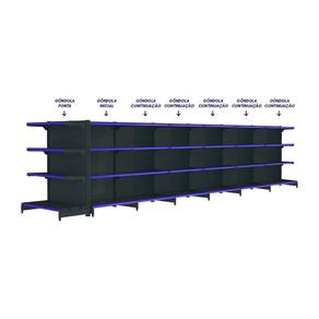 Nosso kit com 6 gôndolas de centro + ponta na cor preta é ideal para armazenamento e exposição de produtos em supermercados, mercearias, farmácias, lojas de utilidades, materiais de construção, agropecuárias, e muito mais, variando de acordo com a capacidade de peso de cada modelo.com 1,37m de altura, esta gôndola proporciona uma exibição eficiente dos produtos, maximizando o espaço vertical da sua loja e permitindo uma organização prática e acessível.as gôndolas possuem uma capacidade de 40kg por bandeja. com pintura eletrostática epóxi, antibacteriana, uniforme e resistente.possui bandejas com inclinação em 3 posições e bandejas reguláveis na coluna a cada 25mm, o que permite adição de bandejas extras. a bandeja é construida em chapa 26 (espessura de 0,50mm). fundo da bandeja quadrado para melhor exposição.pés com regulagem de altura, colunas dupladas e tratamento especial da superfície.a gôndola é prática e fácil de montar, com sistema de encaixe sem utilização de parafusos. você pode instalar suas gôndolas rapidamente, sem complicações, permitindo que você comece a exibir seus produtos em pouco tempo.todas as nossas gôndolas possuem qualidade, resistência e durabilidade garantidas pelo uso de matérias-primas de alto padrão, processos produtivos com a mais atual tecnologia e um cuidado especial em cada etapa.modernas e elegantes, nossas gôndolas são projetadas para destacar seus produtos e criar um ambiente agradável de compras para seus clientes, incentivando a exploração e aumentando as vendas.aproveite ao máximo cada centímetro disponível em sua loja com nossas gôndolas projetadas para maximizar o espaço de exposição, permitindo uma ampla variedade de produtos em um layout eficiente.- capacidade de 40kg por bandeja;- colunas dupladas: com sistema de encaixe, sem utilização de parafusos;- tecnologia exclusiva de apoio sgl;- pés reforçados e com regulagem;- bandejas inclináveis: oferece 3 opções para melhor exposição;- bandejas reguláveis a cada 25mm: possibilidade de adicionar bandejas extras;- reforço na base e bandeja: para maior capacidade de carga e estabilidade;- bandeja é construida em chapa 26;- ponteira da coluna: maior proteção e durabilidade.*porta etiquetas: vendidos separadamente, em variadas opções de cores.> o kit contém- 01x gôndola new premium 1,37m preta ponta- 01x gôndola new premium 1,37m preta centro inicial- 05x gôndola new premium 1,37m preta centro continuação> especificaçõesgôndola pontamodelo: gôndola pontalinha: fit 40altura: 1,37mcor: pretaquantidade de bandeja: 4peso suportado por bandeja: 40kgchapa: 26gôndola centro inicialmodelo: gôndola de centro iniciallinha: fit 40altura: 1,37mcor: pretaquantidade de bandeja: 8 (4 em cada lado)peso suportado por bandeja: 40kgchapa: 26gôndola centro continuaçãomodelo: gôndola de centro continuaçãolinha: fit 40altura: 1,37mcor: pretaquantidade de bandeja: 8 (4 em cada lado)peso suportado por bandeja: 40kgchapa: 26> medidas do produtogôndola pontaaltura: 1,37mlargura: 0,84mpeso: 18kglargura da bandeja: 0,78mprofundidade da bandeja base: 0,40mprofundidade das bandejas superiores: 0,30mgôndola centro inicialaltura: 1,37mlargura: 0,96mpeso: 28kglargura da bandeja: 0,90mprofundidade da bandeja base: 0,40mprofundidade das bandejas superiores: 0,30mgôndola centro continuaçãoaltura: 1,37mlargura: 0,93mpeso: 23kglargura da bandeja: 0,90mprofundidade da bandeja base: 0,40mprofundidade das bandejas superiores: 0,30m> garantia- 6 meses> troca e devoluçãomediante termos da política de trocas e devoluções da empresa.