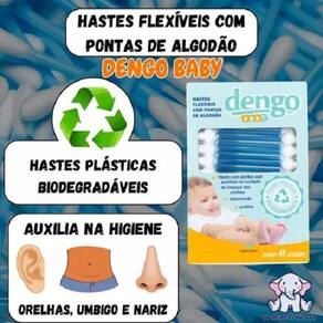 Kit 6 caixas Cotonete para bebes recem nascido dengo baby c/48 cada A Dengo baby é conhecida pela qualidade de suas hástes flexíveis com pontas 100% algodão, bem como pelo compromisso de estar sempre trazendo para o consumidor o que há de mais tecnológico em termos de cuidados com seu bebê. Contém 6 caixas c/48 unidades cada produto 100% algodão Garantia do vendedor: 30 dias