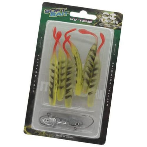 Kit com 6 iscas soft de silicone + 2 anzois zig head. Isca construída em silicone, possui formato anatomico. A isca soft bait é indicada para pesca de robalos, badejos, garoupas, tucunarés, black bass, traíra entre outros predadores. Também pode ser Utilizado com jig heads de vários pesos. Especificações: Marca: Maruri Modelo: W182 Comprimento isca: 10cm Peso isca: 6 gramas Anzol: 1 anzol jig 15gr / 1 anzol jig 18gr Marca: Não Informado