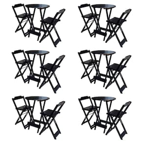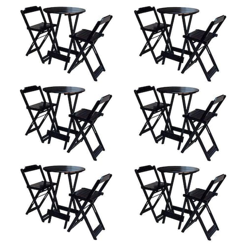 Kit 6 Jogos De Mesa Bistrô De Madeira Com 2 Cadeiras Dobravel Ideal Para Bar E Restaurante Tabaco - Cor: Marrom