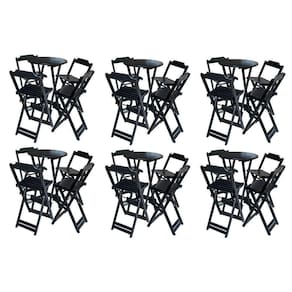 Kit 6 Jogos De Mesa Bistrô De Madeira Com 4 Cadeiras Dobravel Ideal Para Bar E Restaurante Preto - Cor: Preto