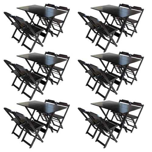 Kit 6 Jogos De Mesa Com 4 Cadeiras De Madeira Dobravel 120x70 Ideal Para Bar E Restaurante - Tabaco