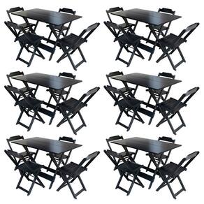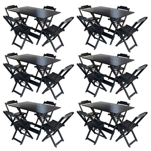 Kit 6 Jogos de Mesa com 4 Cadeiras de Madeira Dobravel 120x70 para Bar e Restaurante - Preto - Preto