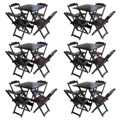 Kit 6 Jogos De Mesa Com 4 Cadeiras De Madeira Dobravel 70x70 Ideal Para Bar E Restaurante - Tabacoé ideal para bares, restaurantes, estabelecimentos, áreas de lazer e tambem para sua casa. Feito em madeira maciça, tornando resistentes e duráveis. Seu design permite que seja encaixado em qualquer ambiente, trazendo um toque a mais para seu estabelecimento. Além de sua durabilidade, o que lhe trará conforto para servir seus clientes. Por ser dobrável torna-se mais fácil guardar, manusear e limpar o produto.Atenção: EVITE USAR PRODUTOS ABRASIVOS E QUíMICOS PARA LIMPEZA DO PRODUTO, aconselha-se o uso de pano umedecido para melhor conservação; mantenha o produto fora de chuva e sol constantesMESA Cor: Tabaco Modelo: Dobravel Dimensões: Altura 76cm | Largura 70cm | Profundidade 70cmCADEIRA Cor: Tabaco Modelo: Dobravel Dimensões: Altura 80cm | Largura 45cm | Profundidade 42cmKit 6 Jogos de Mesa com 4 Cadeiras de Madeira Dobravel 70x70 Ideal para Bar e Restaurante - Tabaco Marca: Preguiçosa
