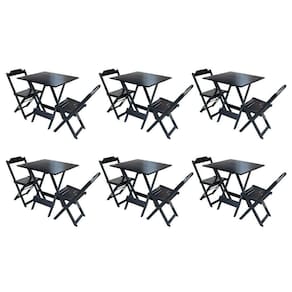 Kit 6 Jogos De Mesa Dobravel Com 2 Cadeiras De Madeira 70X70 - Preto - Preto