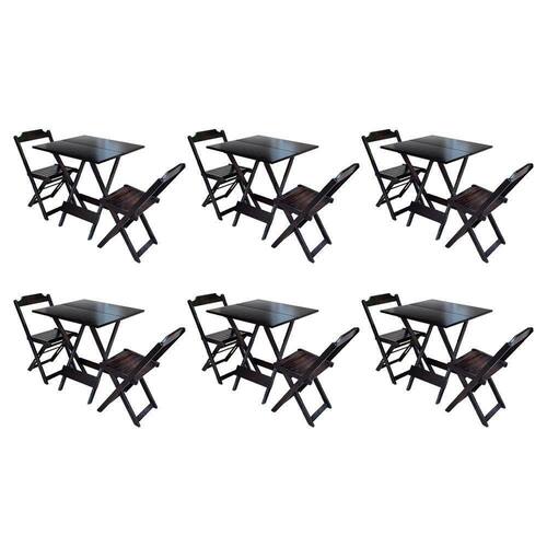 Kit 6 Jogos De Mesa Dobravel Com 2 Cadeiras De Madeira 70x70 - Tabaco - Cor: Marrom