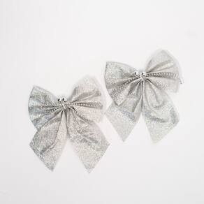 • 6 Laços Pratas com Glitter 16cm;