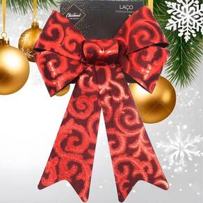 Kit 6 Laços De Natal Vermelho Em Camurça De 32cm;