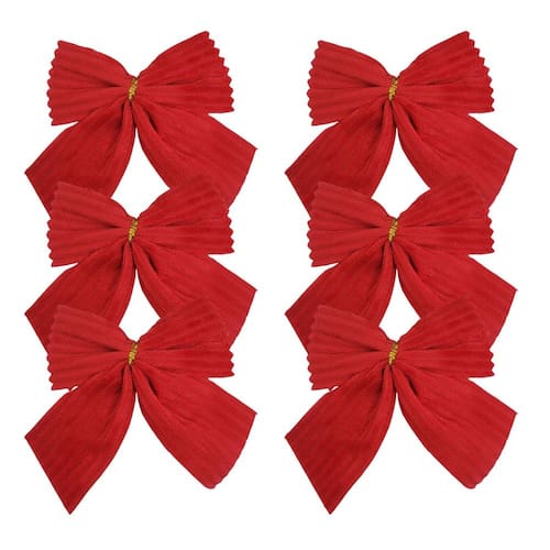 • 01 kit com 6 Laços Natalinos Vermelho Canelado Premium (10 x 10 cm)