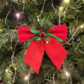 -6 unidades Laço Vermelho Aveludado 11x11cm Decorado Mini Sinos e Folhagens Berries
