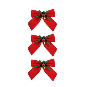 -6 unidades Laço Vermelho Aveludado 11x11cm Decorado Mini Sinos e Folhagens Berries
