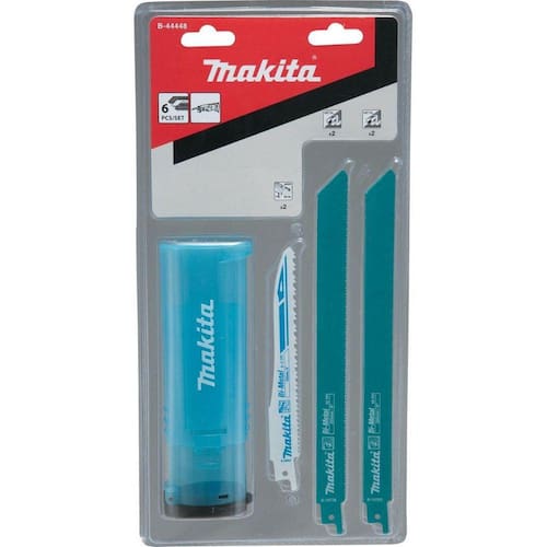 Conjunto de 6 Lâminas para Serra Sabre - B-44448 - MakitaCaracterísticasJogo de 6 Serras para Serra Sabre para cortes rápidos em metais não ferrosos e para cortes de chapa de metal.Ideal para todo tipo de trabalho.Informações Técnicas- 2 Lâminas Makita para Serra Sabre B-05044 Bi-Metal para cortes rápidos em: metais não ferrosos, alumínio, plásticos, madeiras, madeiras com pregos, aço Aço 5-8mm, Plástico 5-77mm, Madeira 5-77mm ; - Dentes por polegada: 6-11;- Comprimento 152 mm;- 2 Lâminas Makita para Serra Sabre B-16776 Bi-Metal para cortes de Chapa de metal de 3-8mm e Tubo de 10-175mm.- Dentes por polegada: 14 ;- Comprimento: 228 mm;- 2 Lâminas Makita para Serra Sabre B-16782 Bi-Metal para cortes de Chapa de metal de 1,5-4mm e Tubo de 5-175mm.- Dentes por polegada: 18 ;- Comprimento: 228 mm.Observação:- Todas as informações divulgadas são de responsabilidade do Fabricante/Fornecedor;