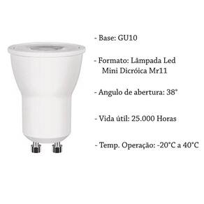 Kit 6 Lampada Led Mini Dicroica Mr11 Gu10 4W Branco Neutro