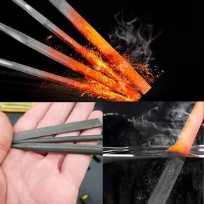 Material: Aço forjado resistenteComprimento: 14 cm cada limaPunho: Revestido em borrachaAlta resistência ao desgasteGrão uniforme e afiação precisa