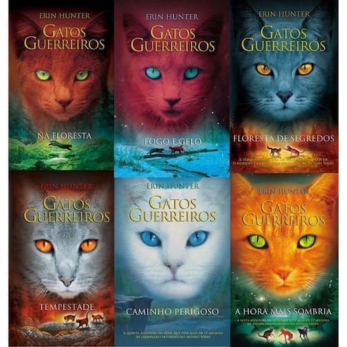 Gatos guerreiros - na floresta - vol. 1 Gatos guerreiros - fogo e gelo - vol. 2 Gatos guerreiros - floresta de segredos - vol. 3 Gatos guerreiros - tempestade - vol. 4 Gatos guerreiros - caminho perigoso - vol. 5 Gatos guerreiros - a hora mais sombria - vol. 6