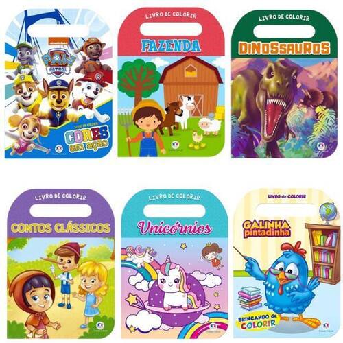 Kit 6 Livros Para Colorir Infantil 32 Páginas Com Alça