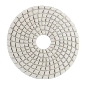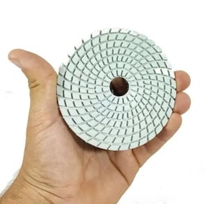 Informações técnicas: Cor: Verde Composição: Resina de alta performance e diamante industrial Diâmetro: 100mm 4'' Grão: 50 Indicado para: Desbaste inicial Superfícies aptas: Mármore, granito, cerâmica, concreto e porcelanato Velocidade de trabalho: 2.500 a 4.000 RPM Não mancha A seco e refrigerado
