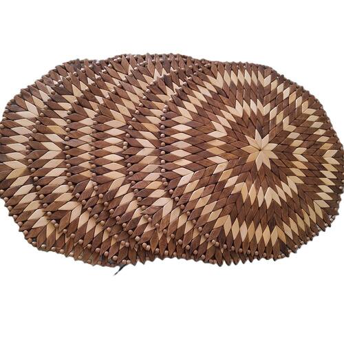 Lugar (Sousplat) americano REDONDO confeccionado em madeira, composto por peças pintadas e envernizadas, nas cor madeira clara, em formato de losângulo, com acabamento nas bordas.