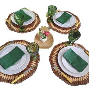 Este lugar americano redondo é uma peça única e bicolor, feita por artesãos do Estado do Ceará, Brasil. Ele é confeccionado a partir de madeira de alta qualidade, garantindo durabilidade e resistência ao uso diário. As pecinhas de madeira envernizadas acrescentam um toque extra de elegância e sofisticação ao produto.