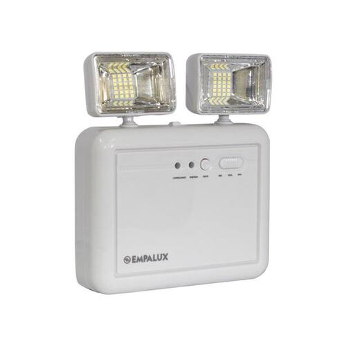 Luminária de Emergência Led 2 Farois Empalux 2200 Lumens KIT com 6 Luminárias de Emergência Produto desemvolvido para situações de emergência quando há falta de energia elétrica. Ideal para saídas de emergência em residências, escritórios, escadas de serviços, elevadores, supermercados, restaurantes, escolas, hotéis, bancos, teatros, museus, etc. Com bateria de Cinza Ácido, com grande capacidade de armazenamento de energia para fornecer mais luminosidade quando acionada. Instruções de uso - antes do primeiro uso carregue por 24 horas, ligando a Luminária em uma tomada de 127v - 220v. - para testar o funcionamento, após a carga inicial, mude a chave para a posição MIN ou MAX e pressione o botão TESTE. Os leds deverão acender em ambas as posições. - A Luminária deve permanecer ligada a rede elétrica, ficando aceso apenas o LED indicador de luminária. Importante - Para aumentar a vida útil descarregue a bateria a cada 2 meses, retirando da tomada por 3 horas posição MAX ou 6 horas posição MIN . Para carregar conecte o prugue na tomada com a chave na posição DESL por 24 horas. Recomendações - Manter a luminária sempre conectada a rede elétrica - A bateria necessita ser carregada constantemente - Evite instalar a luminária em locais: -- com exposição à luz solar -- próximo a fontes de calor -- com muita umidade -- em ambientes externos Características - 48 leds - potência 9,6w - tensão: 127v - 220v - temperatura de cor: 6500 k - Resiste a 70º C - Circuito de proteção contra sobrecarga - Bateria recarregável de Cinza-Ácido 1x6V/4Ah - Fluxo luminoso 2200 lumens - Autonomia no fluxo mínimo: 6 horas - Autonomia no fluxo máximo: 3 horas - Inclui parafusos e buchas para instalação - Material do corpo em plástico e lente de acrílico - Dimensões: c X l X a : 196 X 55 X 222 mm - Peso: 1030 gramas