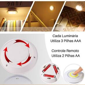 Especificações: Led: led de 5w cob Brilho: 150 lumens Montagem: 3m tape stick on Tipo de bateria: 3 pilhas aaa Tipo de bateria de controle remoto: 2 pilhas aaa Tipos de acendimento: toque ou controle remoto Distância de controle: até 4 metros Dimensão lampada: 972.1cm Dimensão controle: 85.91.5cm Peso: 90g