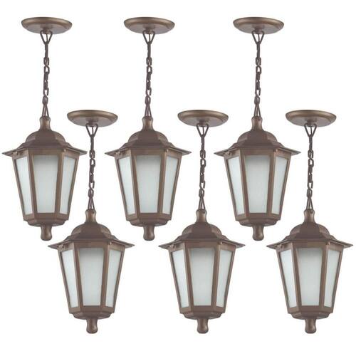 Kit 6 Luminárias de Teto Colonial Pendente Grego 18x58cm Marrom Lente Fosca Dital.