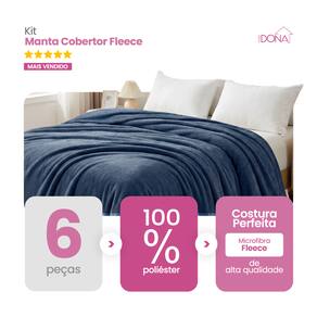 Kit 6 Mantas Cobertor Casal Microfibra Super Macio Com Conforto Térmico Premium Casa Dona - Azul Marinho
