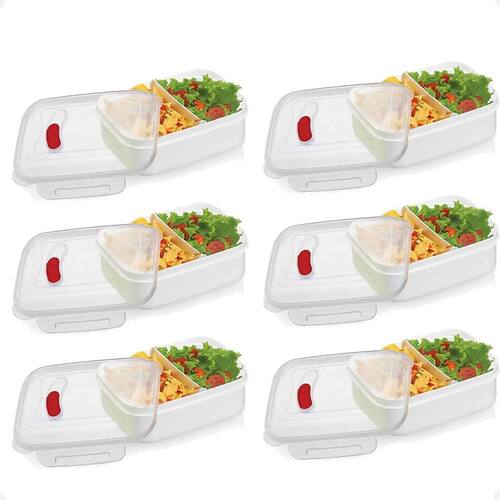 Kit 6 marmita due com 2 divisórias para as comidas 600ml Marmita due com 2 divisórias para as comidas 600ml branca Descrição: Marmiteiro com capacidade de 600 ml, com 2 divisórias para separar as comidas e deixar tudo em seu devido lugar, conta ta,bém com tampa com válvula e travas para transportar com segurança. Especificações: Material: plástico Cor: branco Peso: 70 g Largura: 12 cm Comprimento: 15 cm Altura: 6 cm Capacidade: 600 ml Bpa free Marca: nitronplast Cód fornecedor: 197 Imagens meramente ilustrativas Cores Marca: Não Informado