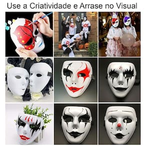 Kit 6 Máscaras Branca sem Face JabbaWockeez - Festa Fantasia Carnaval Cosplay Teatro Dança Máscara branca sem face: confeccionada em plástico duro, material leve e confortável. Encaixe perfeito para os olhos e abertura no nariz e boca. Ideal para compor fantasia, cosplay, apresentações, dança, teatro, pintura e para decoração de ambientes. Tamanho aproximado da máscara: 19 cm de altura x 17 cm de largura. Atenção: Recebemos novas remessas semanalmente e algum detalhe pode variar conforme o lote recebido, porém o produto é o mesmo e mantém as mesmas características e qualidade. Contém: 6 Máscaras Branca sem Face. Fotos ilustrativas e reais do produto.