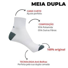 Kit 6 Meias Rikam Dupla Camada Anti Bolhas Corrida Caminhada Tamanho: 38-43 Cor: Descrição Kit com 6 meias, sendo 2 de cada cor, conforme foto. Meia cano curto produzida em poliamida, leve e macia. Composição: 95% poliamida, 5% outras fibras. Ideal para caminhadas e corridas, mas pode se tornar indispensável também para quem quer macies e conforto no dia a dia. Com a Dupla camada a parte interna da meia fica em contato com o pé e a parte externa é que faz atrito no tênis, diminuindo consideravelmente o aparecimento de bolhas. Leve e macia, proporciona conforto. Por ser confeccionada com 95% de poliamida, a meia se torna leve e respirável evitando o acumulo do suor. Os tamanhos disponíveis são adequados para a maioria dos pés. Tamanhos: 34 ao 39 ou 38 ao 43. Marca: Não Informado Ean: 7893935900520