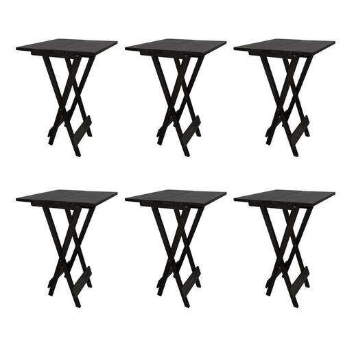 Kit 6 mesa bistro dobravel quadrada preta Esta mesa é ideal para acomodar grupos de pessoas, seja em restaurantes, bares, estabelecimentos comerciais, áreas de lazer ou até mesmo na sua casa. Feito em madeira maciça, resistente e durável. Seu design permite que seja encaixada em vários ambientes trazendo um toque estético a mais ao mesmo. Além de sua estética, essa mesa também garante uma longa durabilidade.Tipo: mesa modelo: bistrô dobrável cor: pretoDimensões: altura 77cm / largura 70cm /profundidade 70cm Atenção: evite usar produtos abrasivos e químicos para limpeza do produto, aconselha-se o uso de pano umedecido para melhor conservação; mantenha o produto fora de chuva e sol constantes.Imagens meramente ilustrativas realizado edição, podendo haver uma pequena variação de cor dependendo de cada tela ou monitor.Kit 6 Mesa Bistro DobrÃvel Quadrada Preta