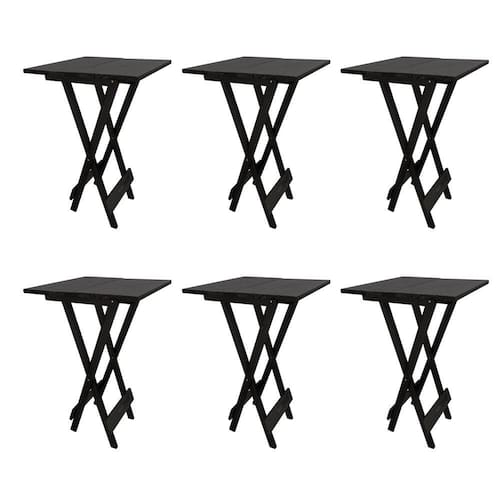 Kit 6 mesa bistro dobravel quadrada preta Esta mesa é ideal para acomodar grupos de pessoas, seja em restaurantes, bares, estabelecimentos comerciais, áreas de lazer ou até mesmo na sua casa. Feito em madeira maciça, resistente e durável. Seu design permite que seja encaixada em vários ambientes trazendo um toque estético a mais ao mesmo. Além de sua estética, essa mesa também garante uma longa durabilidade. Tipo: mesa modelo: bistrô dobrável cor: preto Dimensões: altura 77cm / largura 70cm /profundidade 70cm Atenção: evite usar produtos abrasivos e químicos para limpeza do produto, aconselha-se o uso de pano umedecido para melhor conservação; mantenha o produto fora de chuva e sol constantes. Imagens meramente ilustrativas realizado edição, podendo haver uma pequena variação de cor dependendo de cada tela ou monitor. Marca: MEGA MADEIRA Ean: 7895037871098