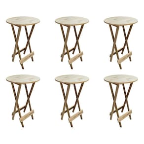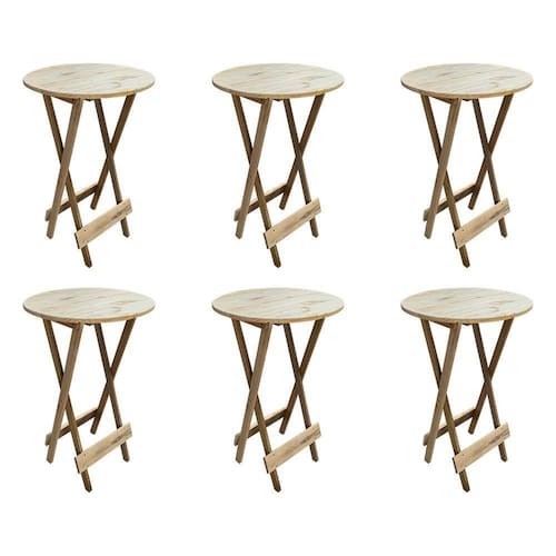 Kit 6 Mesas Bistrô Dobraveis Em Madeira Padrão - Sem Pintura / Crua - Cor: Marrom