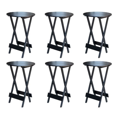 Kit 6 Mesas De Madeira Bistrô Dobravel Ideal Para Bar E Restaurante Preto é ideal para bares, restaurantes, estabelecimentos, áreas de lazer e tambem para sua casa. Feito em madeira maciça, tornando resistentes e duráveis. Seu design permite que seja encaixado em qualquer ambiente, trazendo um toque a mais para seu estabelecimento. Além de sua durabilidade, o que lhe trará conforto para servir seus clientes. Por ser dobrável torna-se mais fácil guardar, manusear e limpar o produto. Atenção: EVITE USAR PRODUTOS ABRASIVOS E QUíMICOS PARA LIMPEZA DO PRODUTO, aconselha-se o uso de pano umedecido para melhor conservação; mantenha o produto fora de chuva e sol constantes. OBS: MDF ULTRA MESA Cor: Preto Modelo: Bistrô Dobravel Dimensões: Altura 99cm | Largura 55cm | Profundidade 55cm
