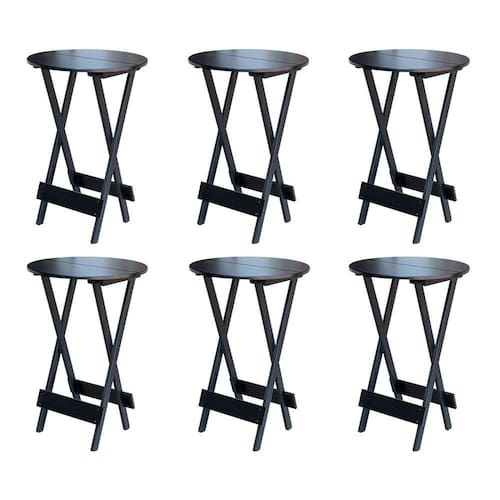 Kit 6 Mesas De Madeira Bistrô Dobravel Ideal Para Bar E Restaurante Preto - Cor: Preto