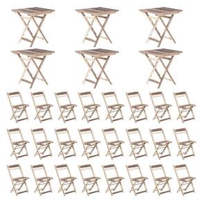 AS IMAGENS SÃO MERAMENTE ILUSTRATIVAS E PODEM SOFRER VARIAÇÕES DE COR E PEQUENOS DETALHES DE ACORDO COM O SEU MONITOR, ILUMINAÇÃO DO AMBIENTE E ATÉ MESMO A SUA PERCEPÇÃO 6 Mesas DobrÃveis com 24 Cadeiras 100% Madeira MaciÃa Ypà Natural
