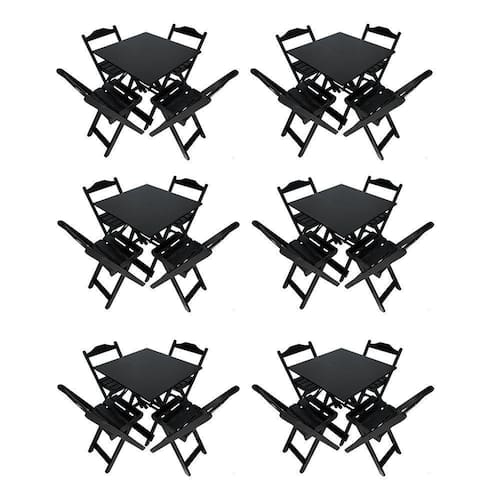 Kit 6 Mesas Dobrável De Madeira Com 4 Cadeiras 70x70 - Preto - Cor: Preto
