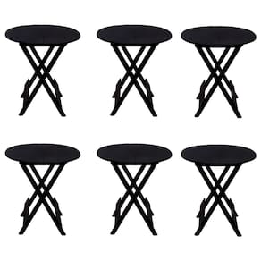 Kit 6 Mesas Redondas Dobráveis em Madeira Maciça 70x70 Preto Ideal para Bares e Restaurantes